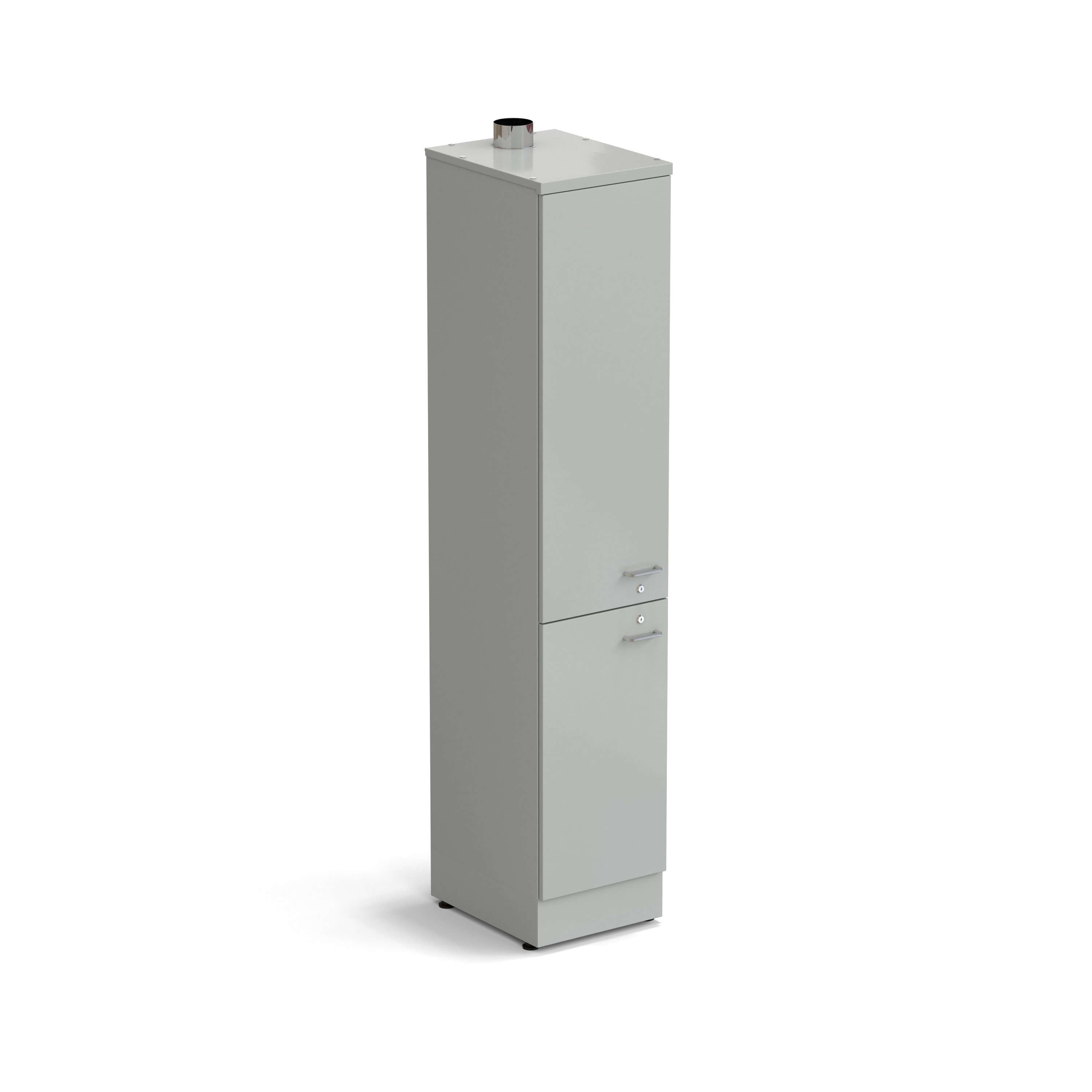 • Шкаф оборудован фланцем диаметром 100 мм для подключения к системе вытяжной вентиляции и имеет металлические дверцы, каждая из которых запирается на ключ;